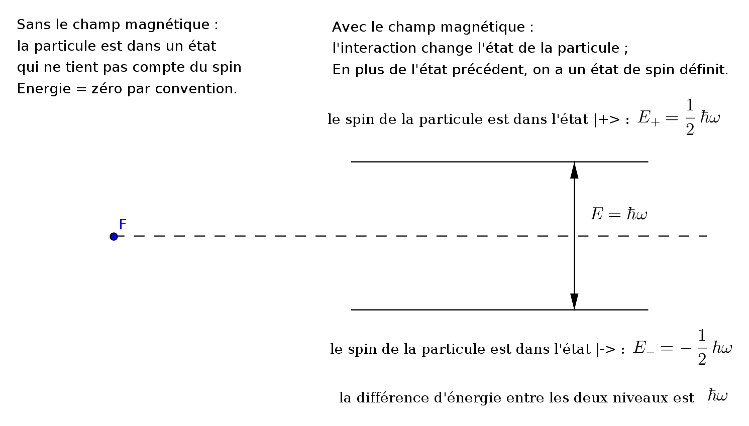 Si un champ magnétique est dirigé suivant z pour une particule de spin 1/2. ; seules 2 valeurs sont possibles, donc seuls deux niveaux d’énergie sont possibles.